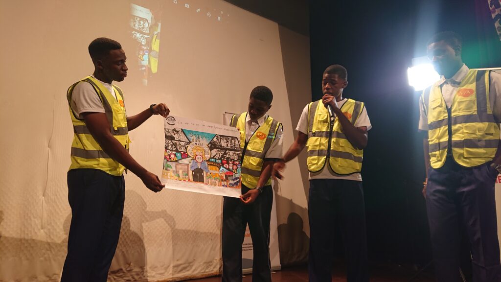 Los embajadores de los tres colegios presentaron sus carteles de prevención, y la experiencia de aprendizaje en seguridad vial adquirida con los formadores, logrando exponer los diferentes aspectos que ponen en riesgo la vida de sus compañeros en los alrededores de sus colegios; dejando igualmente algunas recomendaciones sobre cómo mejorar la seguridad y evitar estos riesgos.